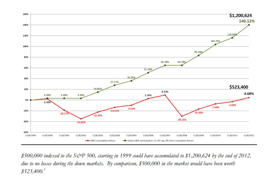 #1 - Indexing - Your money is linked to the market through indexing, so that when the stock market performs well, you participate in the market gains. At the same time, if the market loses, your money is protected with a guaranteed floor.
